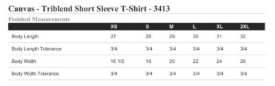 Classic fit t-shirt with a tear-away label and side seamed. Triblend Colors: 3.8 oz., 50% poly, 25% airlume combed and ring spun cotton and 25% rayon, 40 singles.